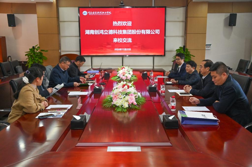 毛晓碧董事长介绍了湖南创鸿立德科技集团有限公司的主要工作、发展趋势以及与其他高校合作的案例,她希望双方在专业建设、人才培养、生产性实训基地建设等方面开展深度合作。