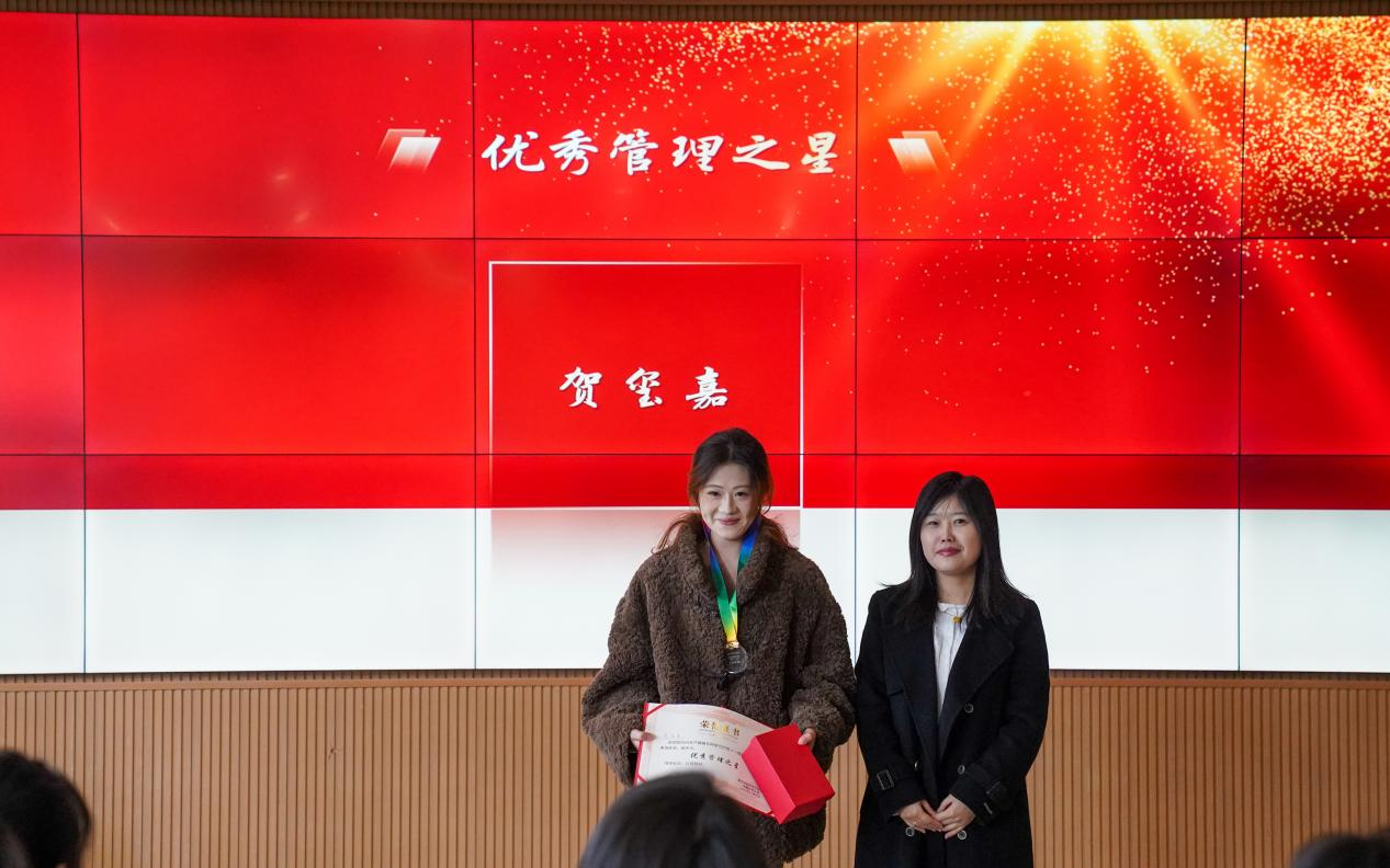 在颁奖环节,副校长周俊华宣读了优秀学生和优秀指导老师的表彰文件。随后,与会领导为获奖学生颁发了荣誉证书和奖品。获奖学生代表姜灿和获奖教师代表胡菁倩进行了发言,分享了参与项目过程中的收获和感悟。