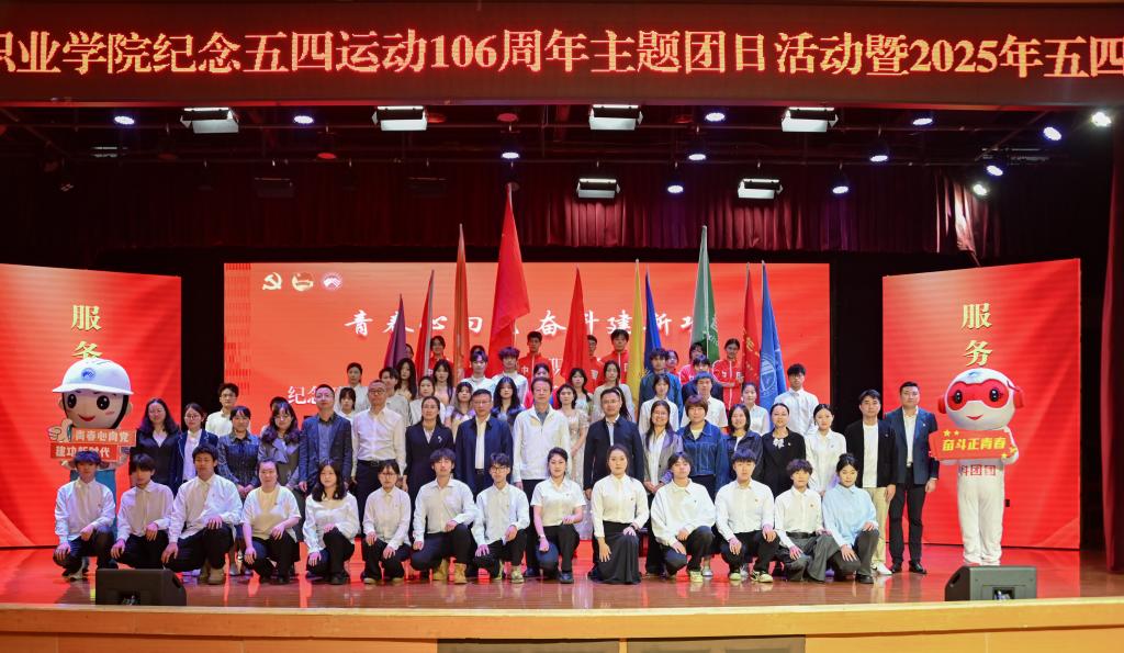 校长张进在讲话中回顾了五四运动的伟大历史意义,指出“五四”精神在新时代依然熠熠生辉,当代青年应顺应时代潮流,把个人成长与国家发展紧密相连。他对全校青年提出三点希望:一是铭记历史,厚植爱国主义情怀,以实际行动维护国家尊严,为强国建设添砖加瓦;二是立足当下,勇挑重担,在学风建设、产教融合、社区治理等方面发挥先锋模范作用,助力学校发展;三是着眼未来,坚定理想信念,做到知行合一,在时代浪潮中找准自身定位,不断提升自我。