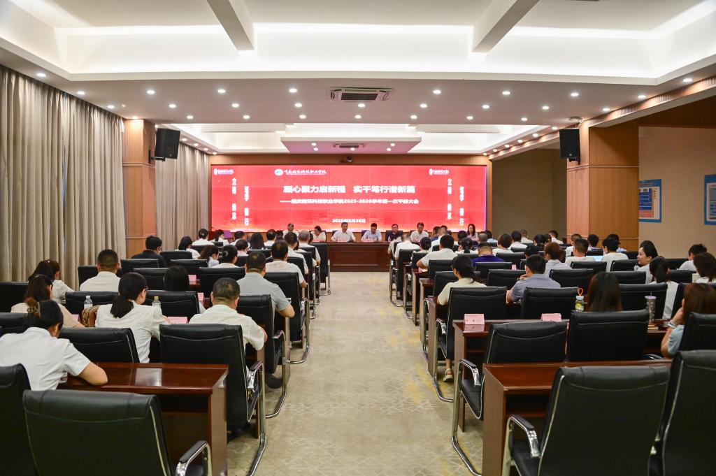 张进校长指出,此次大会既是“收心归位的集结会”,也是“谋篇布局的部署会”,更是“集思广益的研讨会”。他从三个方面做了讲话,一是回顾暑期各项重点工作成效,总结经验、指出差距;二是深入阐述新学年整体工作思路,明确方向、凝聚共识;三是全面部署新学年的重点工作任务,细化举措、压实责任。他强调,新学年的征程已经开启,发展的号角催人奋进。加快推动学校转型发展,需要我们以“时不我待”的紧迫感抓落实,以“滴水穿石”的韧劲破难题。希望大家把暑期奋斗的劲头延续下去,把今天部署的任务细化下去,纳入部门年度目标责任书,心往一处想、劲往一处使,以实干笃行谱写学校转型发展新篇章,以优异成绩推动学校早日建成“中国一流职业大学”。