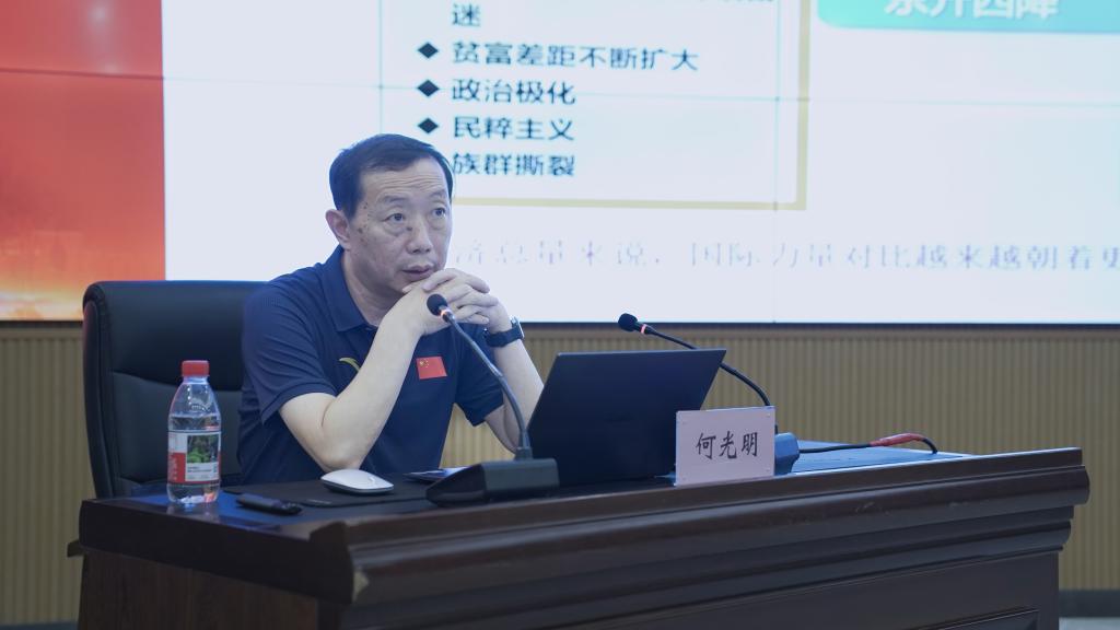 何光明书记以《新时代高职院校领导干部政治能力构建与提升》为题,从认清形势与要求,明确提升政治能力紧迫性;紧扣职责与任务,明晰政治能力的构成要素;立足实际与问题,把握政治能力的提升路径等三个方面,给全体干部开展专题培训,理论阐释深入浅出,案例分析结合实际,现场互动反响热烈。