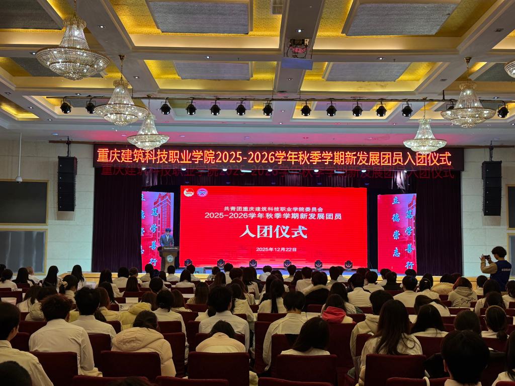 按照入团程序,在与会领导老师见证下,新团员颁发仪式有序开展。团徽、团员证等信物被郑重交付,闪亮团徽象征责任使命,鲜红团员证承载组织信任,标志着237名学子正式成为共青团员,肩负起相应政治责任与时代使命。紧接着,宣誓礼环节将氛围推向高潮。新团员面向团旗高举右拳,在领誓人带领下庄严宣誓,铿锵誓言回荡全场,既是对团组织的郑重承诺,更是建科青年勇担重任的政治宣言。