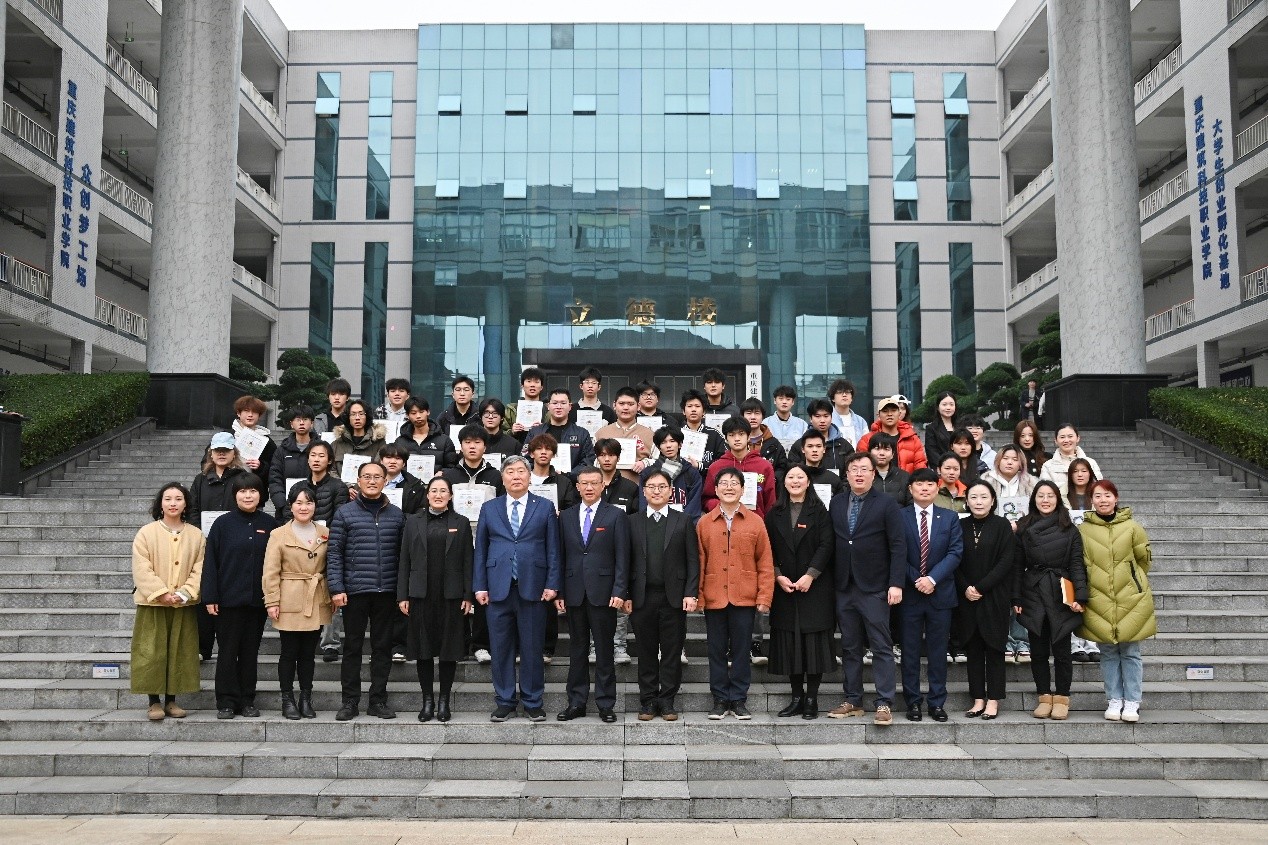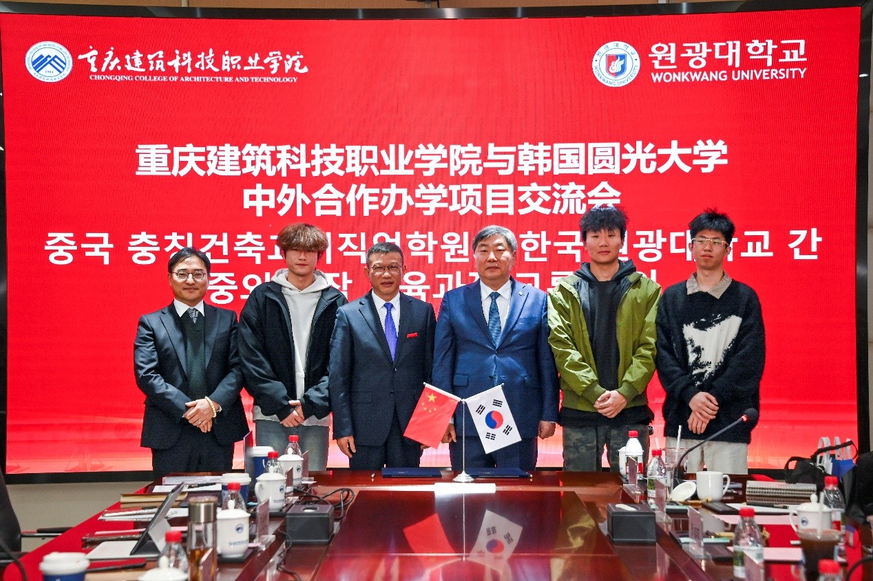 在交流讨论环节,双方围绕课程融合、师资互访、学生短期交流与升学通道等议题展开热烈讨论。合作办学项目学生代表分享了在“国际班”的学习体验与成长收获,表达了对中韩双方教育资源的感谢及赴韩深造的期待。韩国圆光大学为同学们颁发了纪念品。