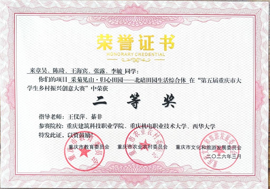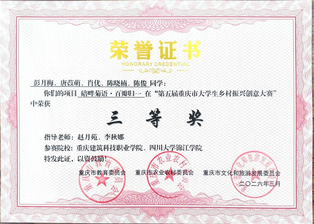“第五届重庆市大学生乡村振兴创意大赛”获奖证书
