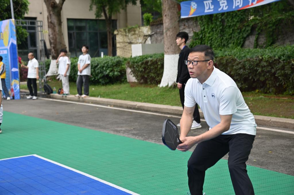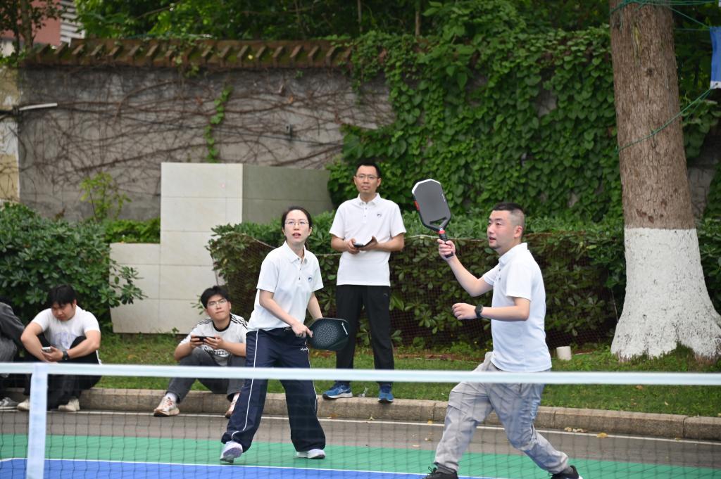 随后,按照赛程安排,各参赛队有序开展比赛。在此期间,中国工程院刘汉龙院士与学校张进校长搭档,为师生进行了匹克球展示赛。刘院士的参与,既是对学校体育教育工作的高度肯定,更是对青年学子“强体魄、练品格”的深切关怀与殷切期许,彰显了院士心系青年成长、重视体育育人的责任与担当。