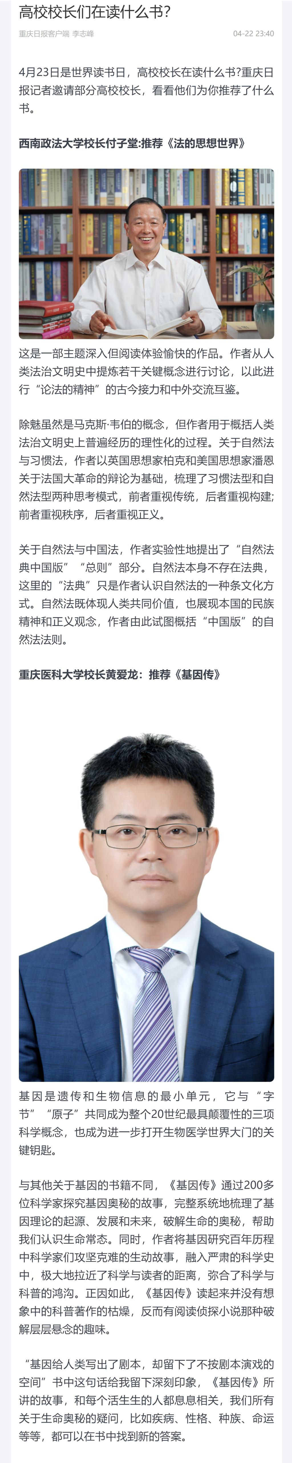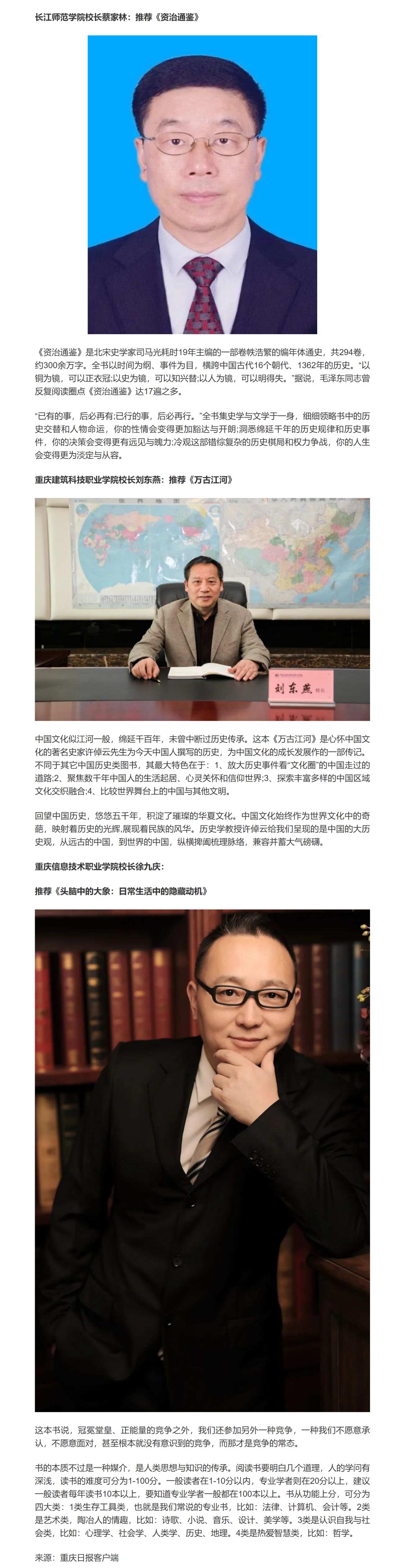 重庆日报客户端报道世界读书日Kaiyun官方网站登录入口校长推荐书目