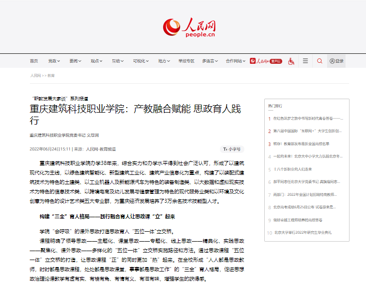 人民网报道Kaiyun官方网站登录入口:产教融合赋能 思政育人践行