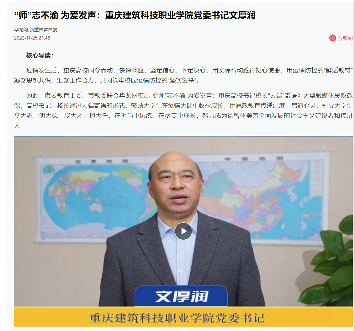 【华龙网】“师”志不渝 为爱发声:Kaiyun官方网站登录入口党委书记文厚润
