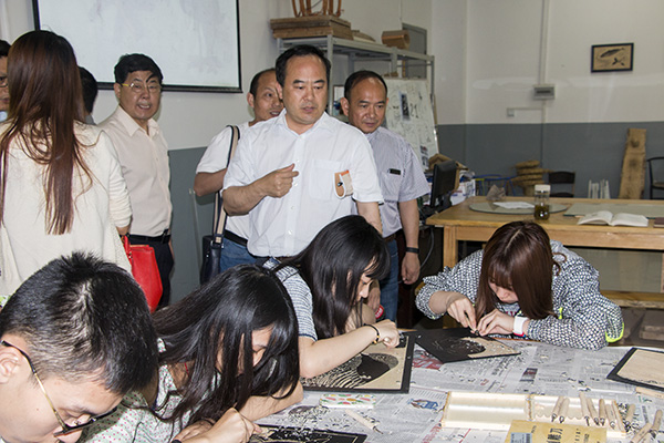 在环艺系的各个创新基地里,考察领导了解了制作雕刻、做工艺品、做陶瓷的工序后表示,这些雕刻做得很仔细,触感很好,比较有特色,这些手工品肯定很有市场。同时看到同学们做得那么认真,说明这个项目引起了同学们参与的兴趣,对同学们的吸引力很大。