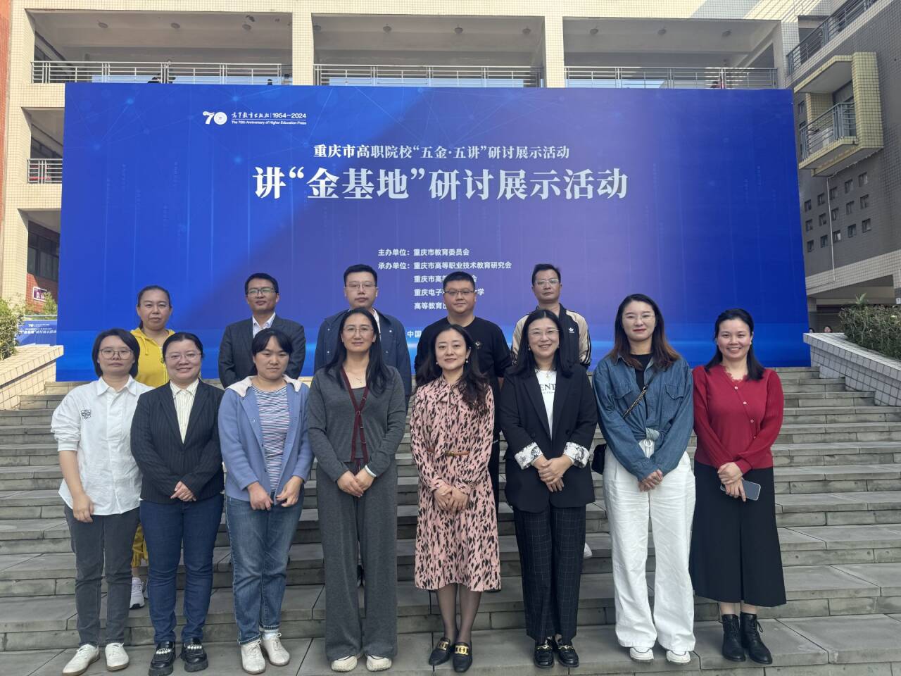 10月23日,在学校副校长王靖的带领下,二级学院领导和教师代表十余人,在重庆电子科技职业大学,参加由重庆市教育委员会主办,重庆市高等职业技术教育研究会、重庆市高等教育协会、重庆电子科技职业大学和高等教育出版社共同承办的重庆市高职院校“讲金基地”研讨展示活动。