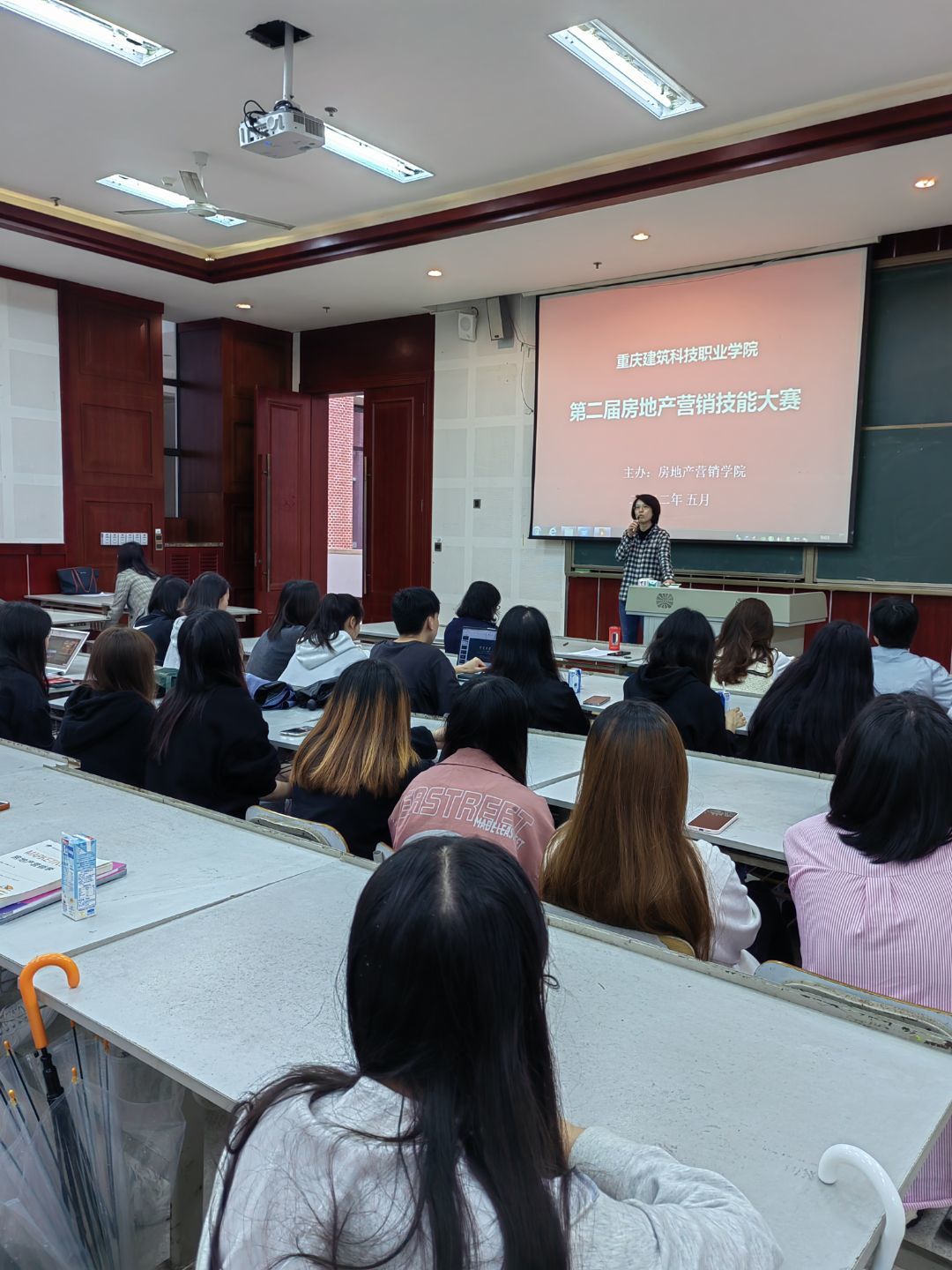 正式比赛于2022年5月18日在笃学楼4205举行。比赛邀请到房地产营销学院副院长周旖、房地产营销学院院长助理陈雨作为特约嘉宾,与另外三名专业课任课教室共同组成专家评委团队。比赛开始前,周旖副院长致比赛开幕辞。周院长希望同学们“能赛出风格,赛出成绩,把我们房地产营销学院学生最闪亮的一面展示出来,把我们职业教育的成果展示出来”,并预祝各参赛队伍都能取得良好的成绩。