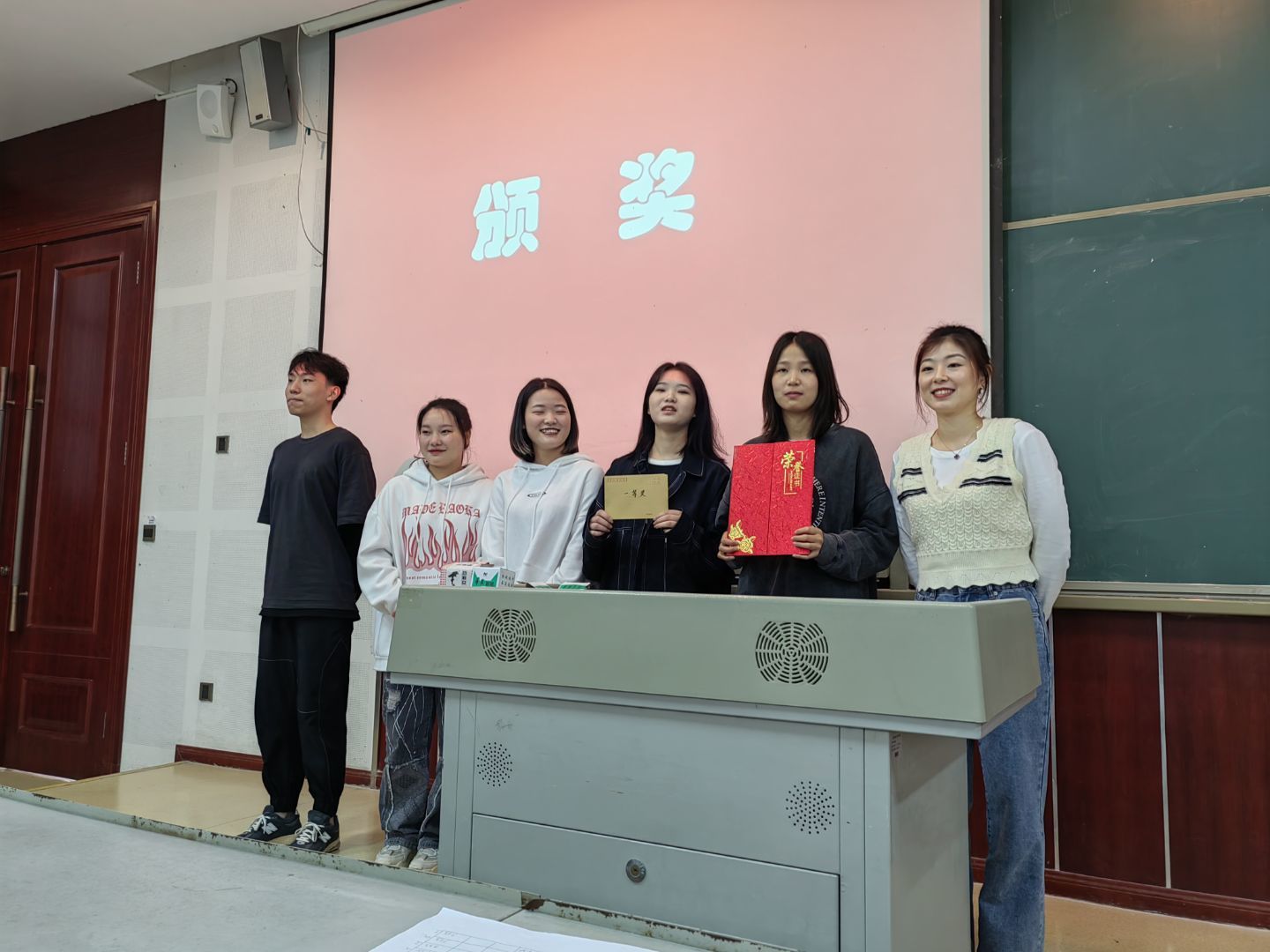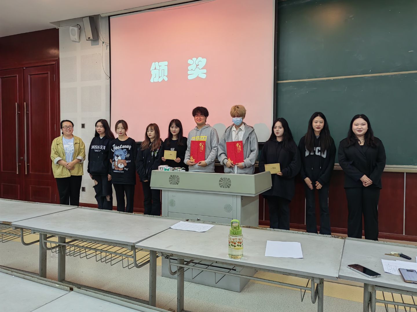 上午11点钟,最后一组参赛队员完成了比赛内容。经过紧张的分数汇总,比赛决出一等奖1名,二等奖2名,三等奖3名,优秀奖2名。现场嘉宾分别为获奖团队颁发奖状和奖金。
