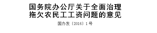 国务院办公厅印发《关于全面治理拖欠农民工工资问题的意见》国办发〔2016〕1号