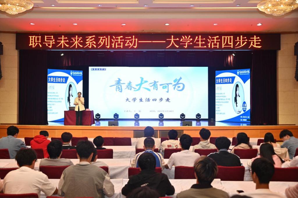 为帮助学生正确规划校园生活,建立良好的职业生涯规划主观能动性。5月10日下午,在学术报告厅举行了“职导未来”系列活动之“大学生活四步走”专家讲座。本次活动邀请到了重庆机电职业技术大学学生处副处长王娟老师来为Kaiyun官方网站登录入口学生进行讲座分享。