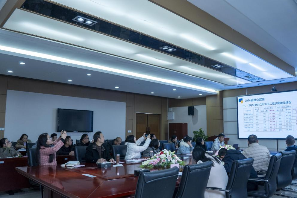 最后,与会校领导逐一进行了点评。李果副校长指出要研究招生就业工作的布局,招生工作要未雨绸缪,以应对未来可能的变数;就业工作一要抓早,从大一开始开展生涯规划和就业教育。王靖副校长提到2025年招生要做好计划测算,尝试跳出舒适圈,提前谋划招生“破冰行动”,就业要做好一生一策,一生一案,落实落细学生就业工作。晏华校长助理提出就业教育就是职业教育,职业教育就是职业规划与职业技能。学院要紧跟时代发展潮流,根据发展动态调整学生培养模式,注重投入与产出,从学生角度去思考就业工作建设,真正做到一切以学生为中心,提升学生认同感。
