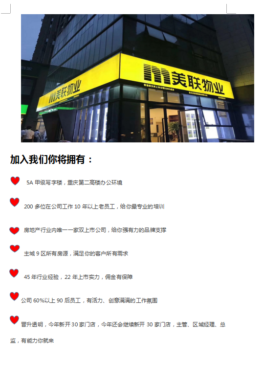 工作职责:1.在公司门店工作,给客户提供专业的房产咨询和服务