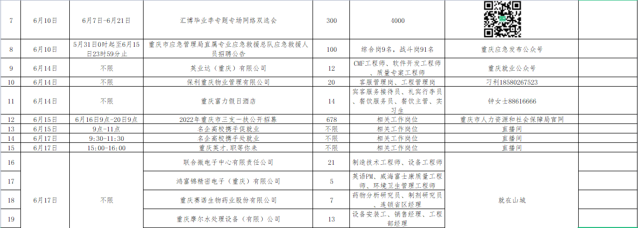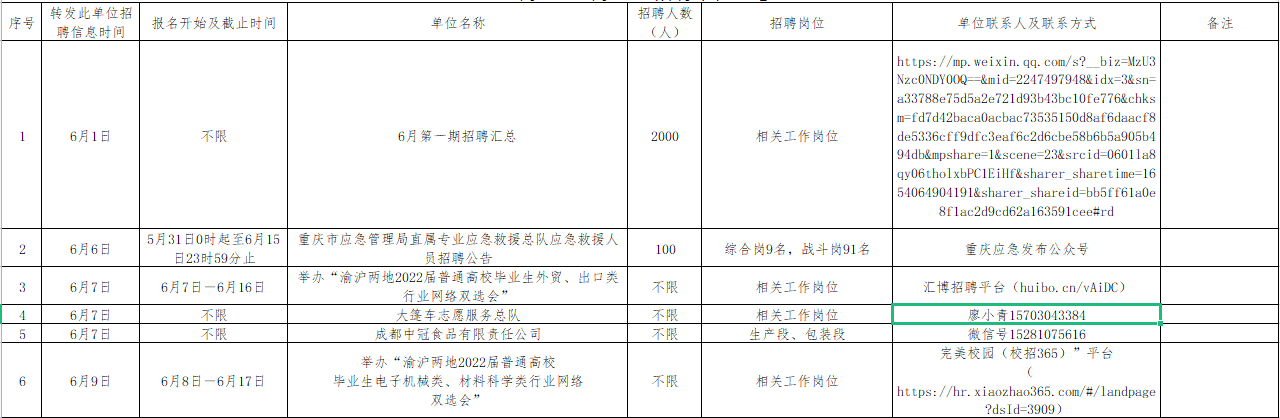 6月1日-6月30日招聘单位汇总