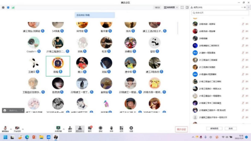 2022年11月9日19:00,建筑工程学院为做好疫情防控相关工作安排,密切关注同学们的心理状态和学习生活,在腾讯会议上召开了疫情防控会议,参会人员有建筑工程学院党总支书记陈程、建筑工程学院学生党支部书记张丹、建筑工程学院团支部书记黄川及所有学生骨干。