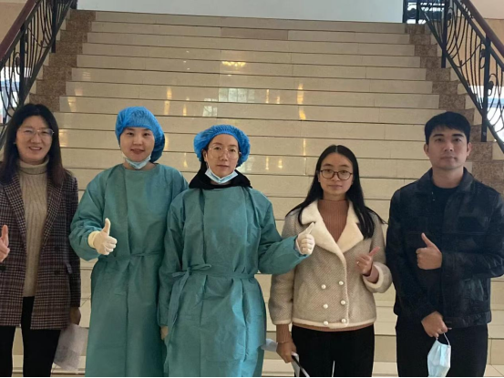 参与疫情防控工作的汪国菊、李浪花、张丹、傅太宇、黄川(从左至右)
