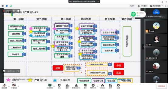 在这个特殊的时期,本次培训特地邀请了广联达公司专业培训讲师张玲玲老师通过线上会议的形式进行教学和答疑。本次培训主要着眼于教育行业分析,建筑行业分析,高校数字造价建设方案及人才发展思考四个方面进行,从产业升级出发,揭示数字建筑是未来建筑产业发展的核心引擎,结合教育部职教20条的要求,明确新形势下的造价行业造价人的培养目标,打造全过程、全要素的数字造价一体化课程体系。培训结束后,广联达企业的负责人还与我院教师关于未来学生人才培养方向,实训平台的使用进行了深入探讨,为未来的进一步合作奠定了坚实的基础。
