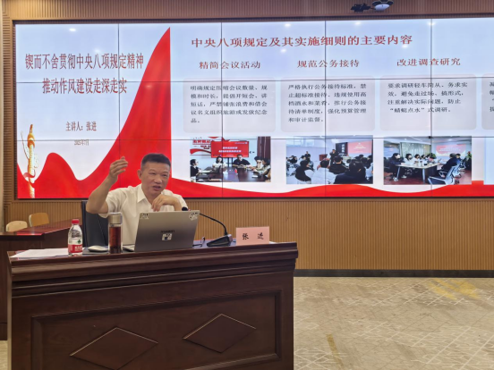 2025年7月7日,校长张进教授为智能建造学院全体教职工讲授题为“锲而不舍贯彻中央八项规定精神 推动作风建设走深走实”的专题党课。智能建造学院全体教职工参加学习。