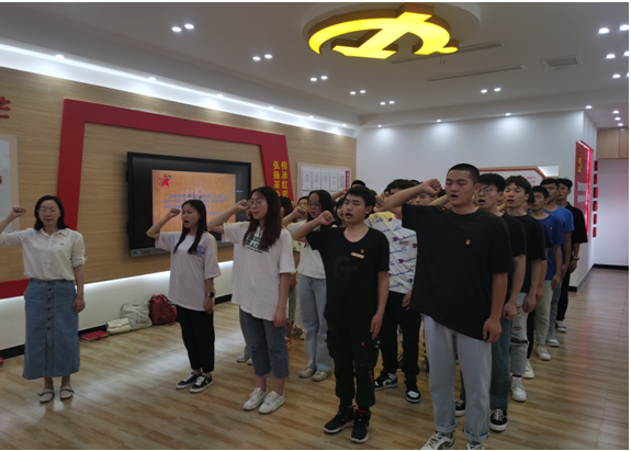 在党徽面前,学员们面对党徽举起右手,重温入党誓辞。时刻提醒作为党