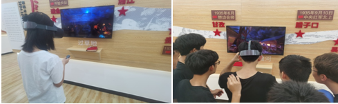 VR学习区用现代科技还原呈现了翻雪山、过草地、飞夺泸定桥的奋勇抗战、狼牙山五壮士英勇跳崖等等场景,让同学们有机会身临其境、感同身受,加深同学们对长征的了解,对长征精神的理解。