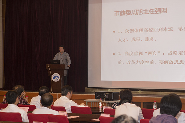 会上,学校党委副书记吴绍莲传达了重庆市“双创工作”相关会议精神。并就“众创空间”的提出背景、“双百示范行动”、学校的“众创空间”在“哪里建?”“谁来建?”“怎么建?”等问题进行了解读。
