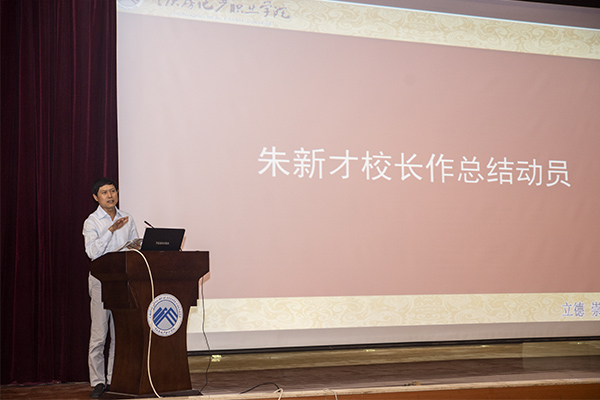大会由科研处处长刘访华主持。新鸥鹏教育集团“专升本”办公室主任何大同,学校校长朱新才,副校长陈新业、何培斌,党委副书记陈锦连、吴绍莲,校长助理洪全以及教务处、学生处、人事处、督查室、各系部、教研室负责人等100多人参加会议。