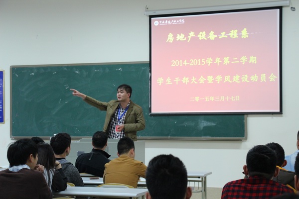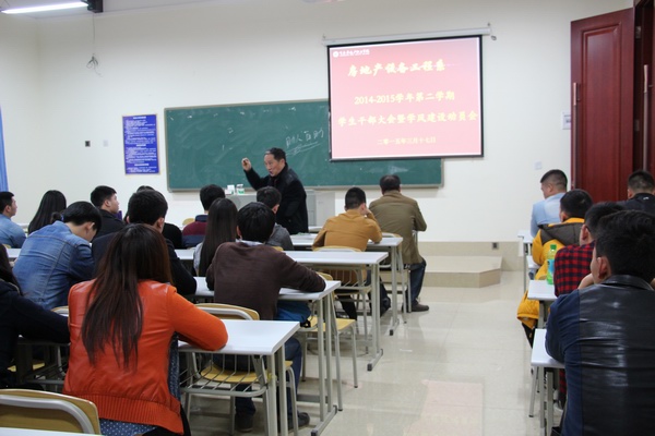 3月17日,房地产设备工程系在教学楼2508召开了“2014-2015学年第二学期学生干部大会暨学风建设动员会”,会议由李玲老师主持,参加会议的有房地产设备工程系郝旭书记,高云副书记,刘清秀老师以及2013级和2014级各班班干部以及学生会干部。