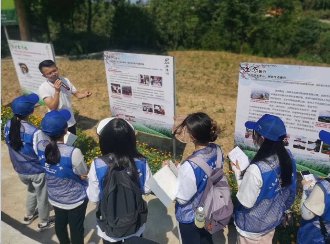 驻村第一书记向志愿者们介绍石角镇新农村脱贫历程