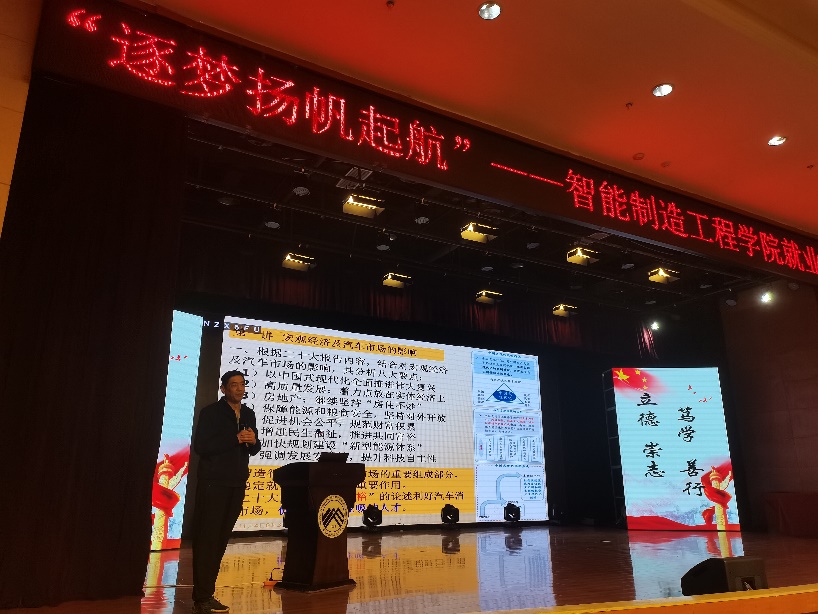 为加强对我院毕业生就业指导与帮助,提升毕业生就业意识,明确职业发展目标,智能制造工程学院于11月4日8:30在学术报告厅举行逐梦扬帆起航—就业指导讲座。此次就业指导讲座特邀我院严伟明教授主讲,学院院长、党总支书记、毕业班辅导员及2023届全体毕业生参加了本次讲座。