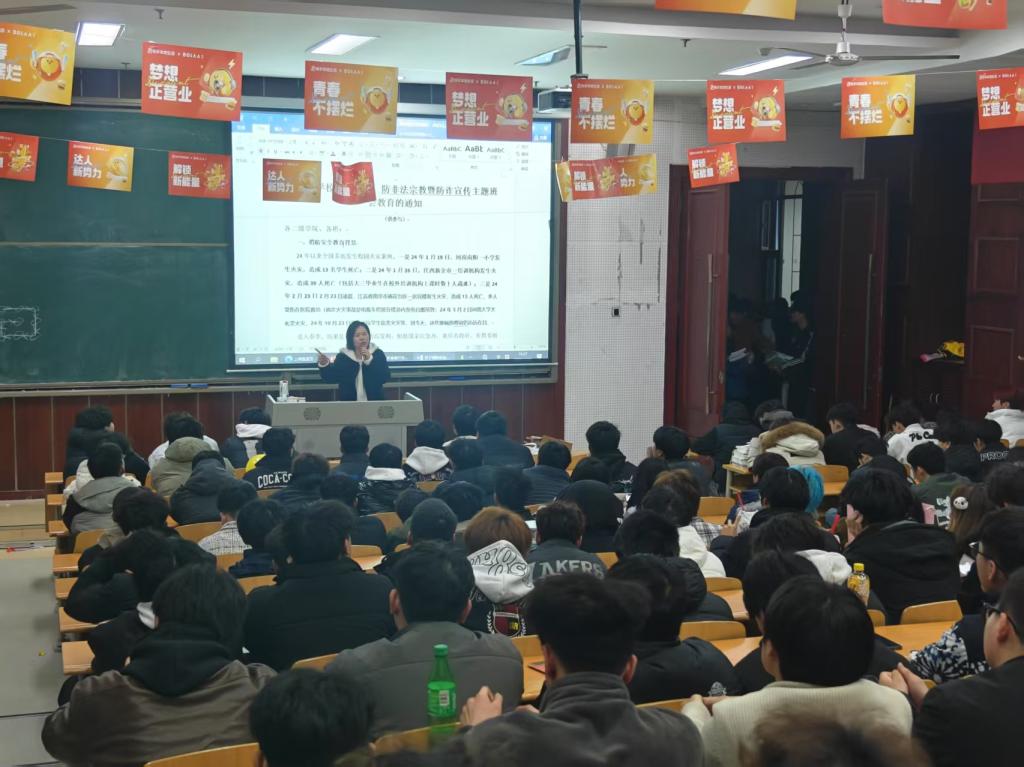 安全与纪律教育作为班会的重点内容,辅导员老师更是煞费苦心。她从反诈防骗、宿舍用电安全、消防知识普及到个人信息保护等多个方面,深入浅出地讲解了相关注意事项,并用真实案例警示学生远离违法活动,严守法律底线。同时,还特别强调了心理健康的重要性,鼓励学生们在面对学业与生活压力时,要正确应对,及时寻求专业心理咨询,保持积极向上的心态。