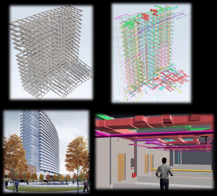 2025年1月至2025年4月,几个团队开始进行紧张的建模工作。在机电建模前,需要首先对项目的建筑和结构进行建模。这部分工作并不是参赛学生们所擅长的,但是大家依然愿意迎难而上,干劲儿十足。团队成员分工合作,在老师们的指导下,形成了不同专业、不同阶段、统一调度的工作模式。为了加快整体建模进度,团队成员分组同时对土建和机电进行建模,遇到困难时,一起讨论,共同克服。建筑和结构模型初步完成后,各专业成员进一步进行给排水、消防水、空调、通风和防排烟、配电、照明、弱电等系统的三维机电建模。