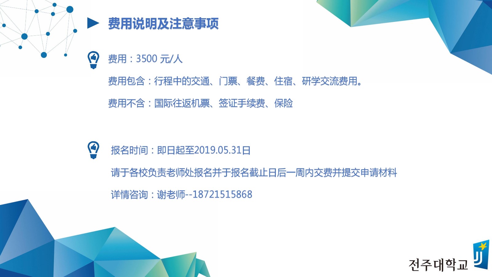 2019韩国全州大学夏季访学项目报名开始啦