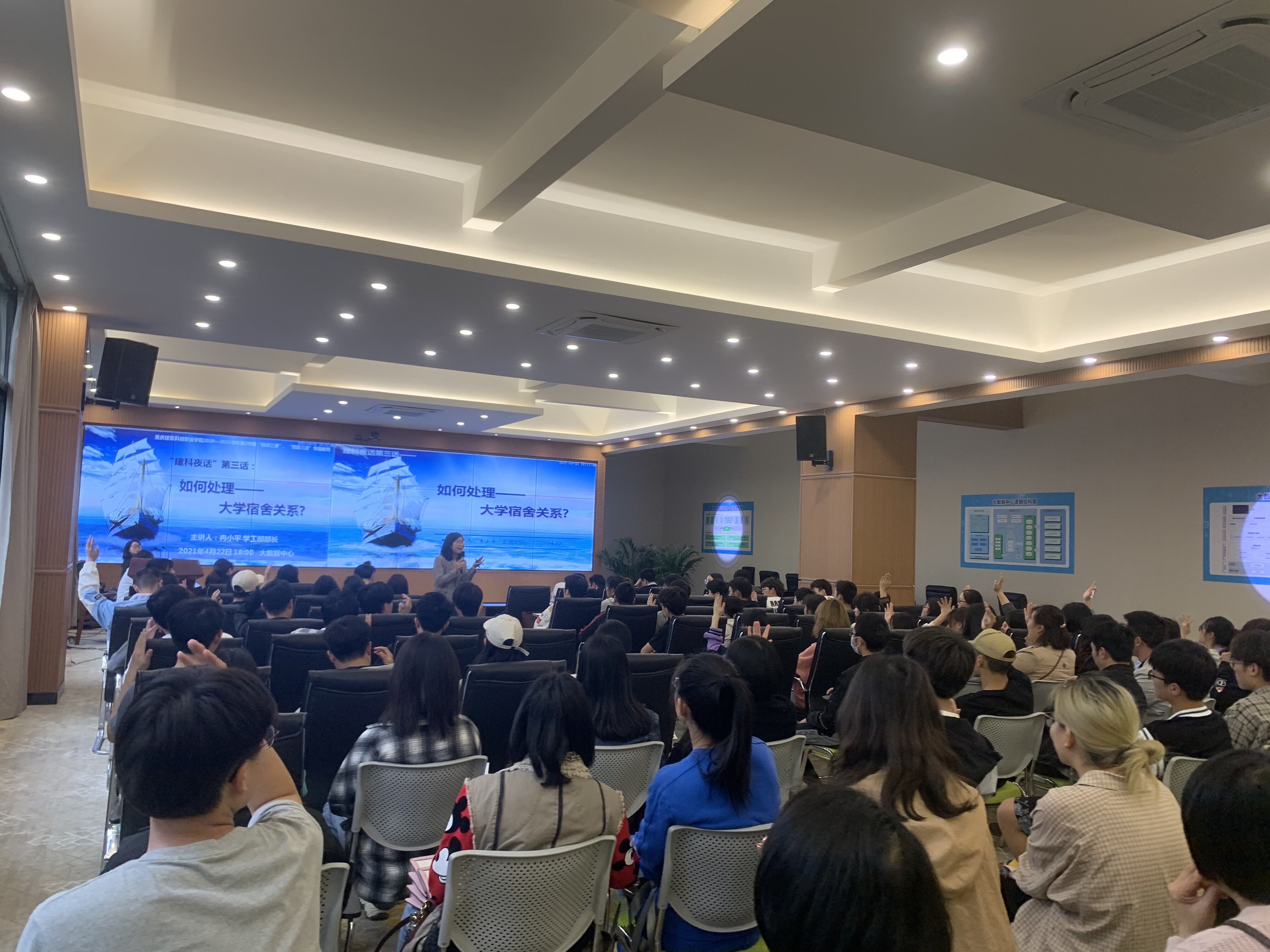 为引导学生正确处理宿舍人际关系,造就和谐上进寝室氛围。2021年4月22日18:00,Kaiyun官方网站登录入口党委学工部在大数据中心开展“建科夜话”第三聊:如何处理寝室关系专题讲座。本次讲座由学工部部长冉小平主讲,学校副校长李果、各二级学院书记、辅导员及寝室长代表共同参与。