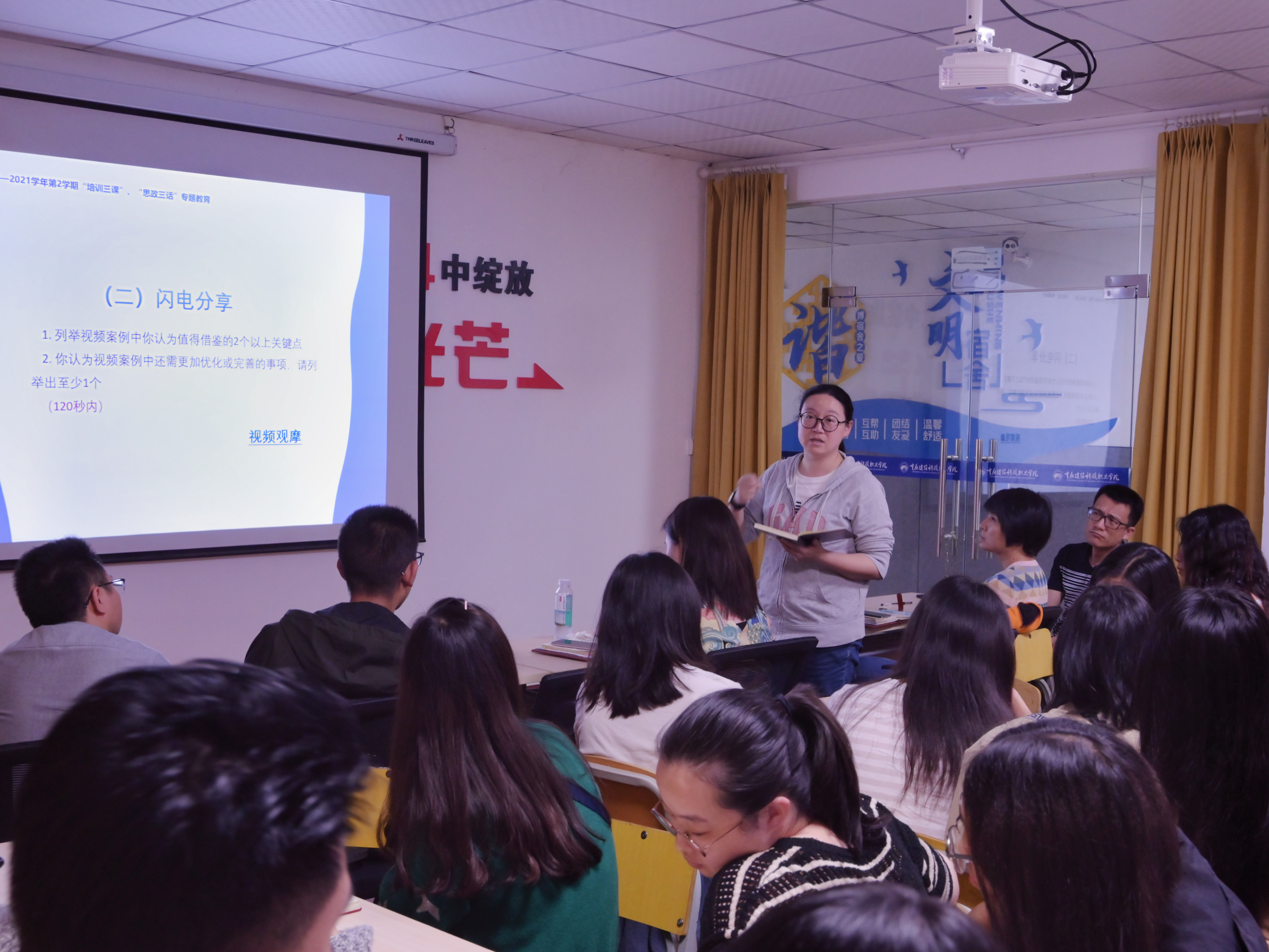 最后,冉部长用“没有垃圾,只有放错地方的宝贝”等观点为此次讲堂拉下帷幕,希望各位老师能够加强与学生的沟通交流,这样才能更了解情况、帮助他们。在此过程中也要不断提升自己的能力、随时改变思维方式,这样才能在工作中取得更好的进展。