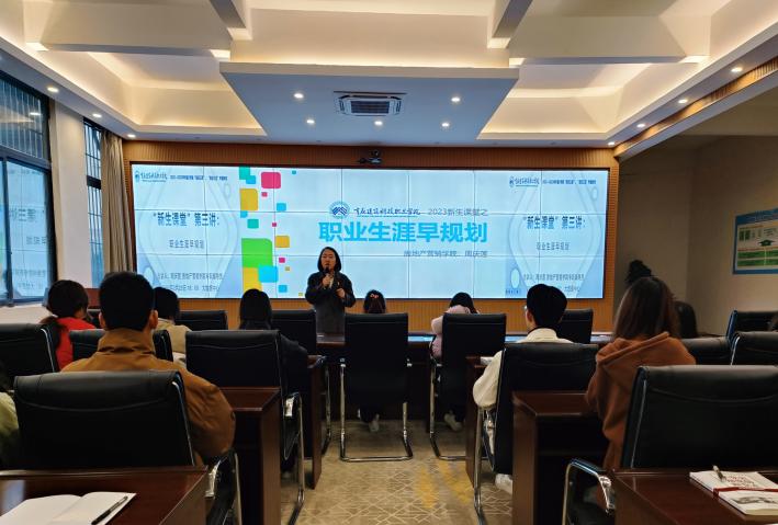 2月23日18:00,学校学工部组织的“新生课堂”第三课专题讲座在大数据中心举行,房地产营销学院专职辅导员周庆莲以“职业生涯早规划”为题进行讲座,2022级学生代表共84人参与。