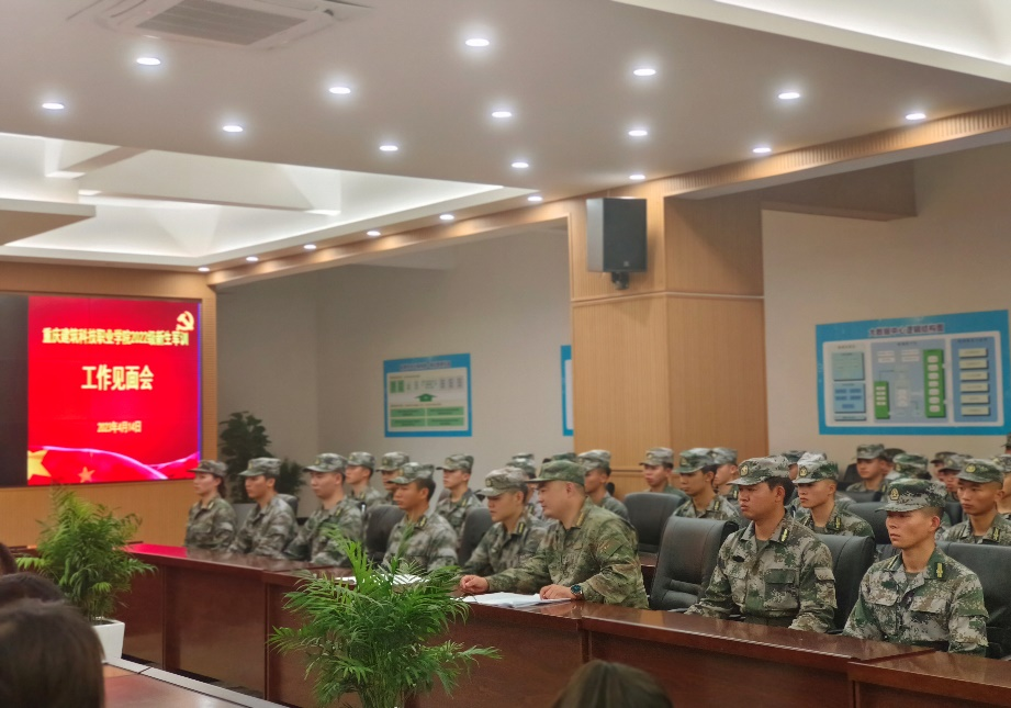 为进一步深化2022级学生军训工作,夯实军训工作、牢筑思想基础,2022年4月14日20:00重庆建筑科技职业学院2022级学生军训工作见面会在大数据中心召开。本次见面会由武装部李文政老师主持,学工部部长冉小平、学工部副部长谭周财、军训团团长王贵存以及全体教导员、指导员、教官参加本次会议。