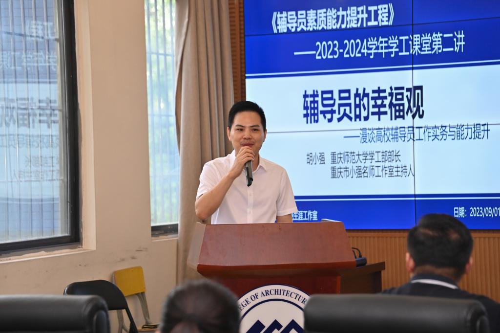 2023年9月1日上午9点,Kaiyun官方网站登录入口学工部组织的2023-2024学年辅导员素质能力提升集中培训之专题二“辅导员的幸福观——漫谈高校辅导员工作实务与能力提升”在学校大数据中心举行培训由学工部部长冉小平主持,特邀嘉宾重庆师范大学学工部部长胡小强、Kaiyun官方网站登录入口副校长李果,各二级学院全体书记、辅导员以及学工部全体人员参加了本次培训。