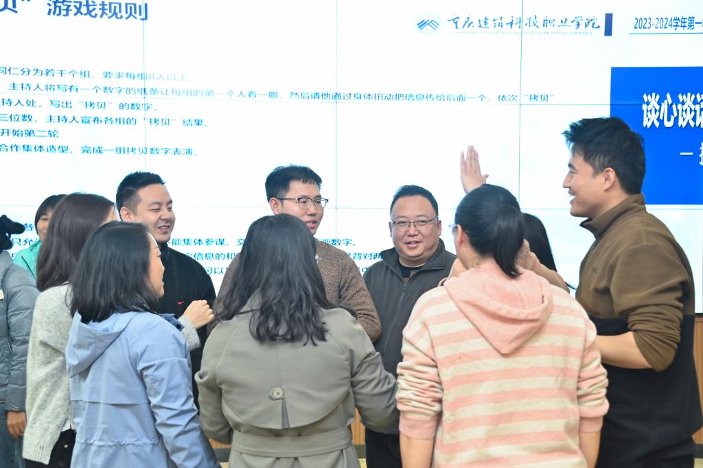 本次沙龙分互动游戏、技巧讲述和情景模拟三个环节。活动由互动游戏“人体拷贝”引出主题和谈心谈话的重要性,在技巧讲述环节,主持人从谈心谈话的准备、常见类型、谈话原则、谈话思路、基本流程和谈心谈话的方法技巧等方面发表了个人看法,并结合实际工作,分享了自己与学生谈心谈话的感悟,强调与学生谈心谈话时,应当把握住“心中有数,追本溯源”“手中有法,有理有据”“排兵布阵,把控节奏”“有感而发,高度适当”的关键技巧,引导辅导员老师应努力成为学生成长成才的人生导师和健康成长的知心朋友,真正落实好立德树人根本任务。在情景模拟环节,与会辅导员分组探讨,模拟了谈心谈话常见的情景,用实践演绎“以谈知心,用话育人”,探讨交流了不同类型谈心谈话要注意的细节和重点。
