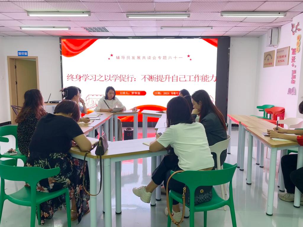 在当今这个科技飞速发展的时代,我们面临着越来越多的复杂问题和挑战。为了有效地解决这些问题,加强辅导员的创新思维。2024年6月11日星期二晚上八点,辅导员发展共读会专题六十一:“终身学习之以学促行,不断提升自己工作能力”,在一站式服务中心举行。本次共读会由罗华玺老师主持,书记齐云霞及辅导员共同参与。