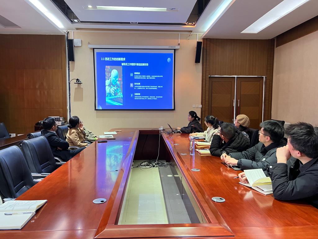 在人工智能(AI)浪潮席卷全球的今天,它不仅成为技术革命的先锋,更是教育领域内一股不可忽视的变革力量。作为高校思政教育的中坚力量,辅导员们如何在这一时代背景下,有效利用AI工具提升工作效率、创新教育方式,成为了一个值得深入探讨的课题。2025年2月27日下午15时,辅导员“跃迁+”发展共读研讨推进会第十三期——“DeepSeek如何赋能新时代思政工作”在立德楼五楼会议室举行。本次研讨会由数字工程学院董媛老师主持,学校副校长李果、学工部部长冉小平、学生处副处长周玟瑾、数字工程学院书记张运来及数字工程学院全体辅导员数共同参与。