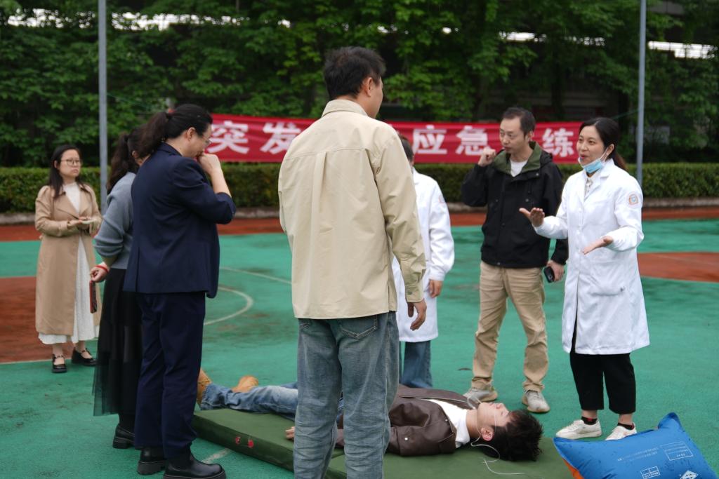 演练结束后,模拟现场参与人员对此次演练提出了优化意见。校医院杜校医、学工部部长冉小平、校党委副书记李果分别对演练进行了总结,对演练现场应急救援人员的处置方式和协作精神给予肯定,提出日常工作和生活中基本急救知识掌握的重要性,强调要每月开展演练活动。