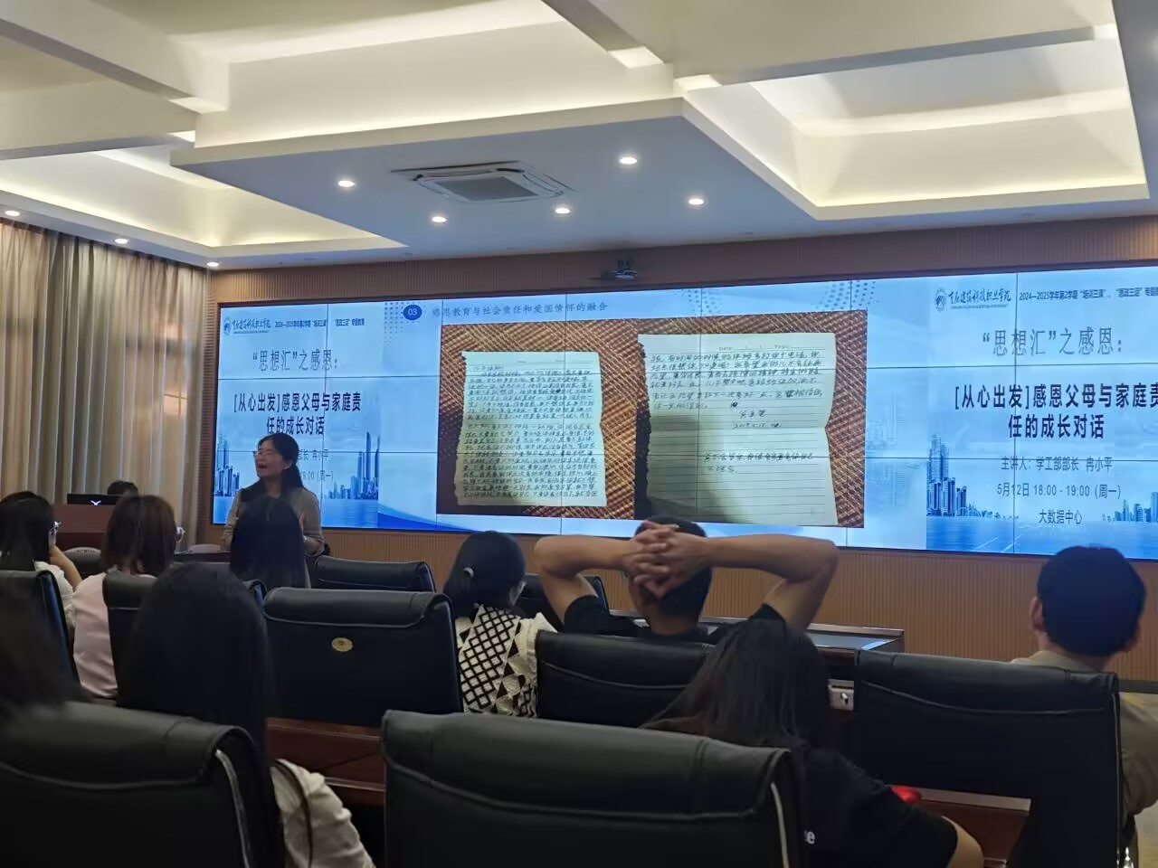 20255月12下午18:00Kaiyun官方网站登录入口学工部在大数据中心组织举行2024-2025学年第二学期“思想汇”之感恩:[从心出发]感恩父母与家庭责任的成长对话的专题讲座,由学工部部长 冉小平主讲,值班书记、辅导员以及在校学生代表90余人参与。