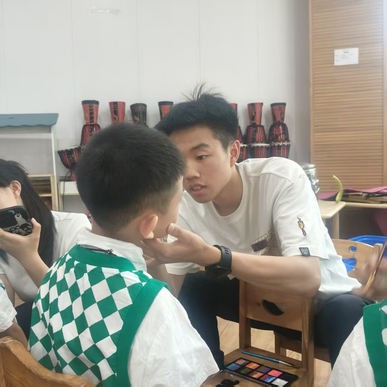活动当天,志愿者们怀着饱满的热情早早来到幼儿园,他们化身“魔法造型师”,穿梭在孩子们中间,用专业且轻柔的手法为孩子们精心装扮。描绘眉眼时专注认真,轻扫腮红时温柔细致,在志愿者们的巧手下,孩子们变得更加俏皮可爱,纯真的小脸上洋溢着自信与对表演的期待。