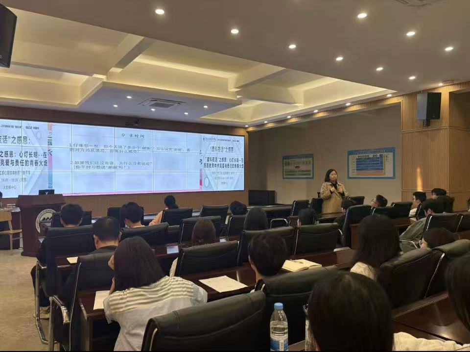 讲座上,张老师通过“爱的礼物”环节,引导同学们回忆自己成长中收到爱的礼物,分享收到礼物时的喜悦,在温馨的氛围中开启感恩探索之旅。她提到要借助心理学研究成果,指出习惯说“谢谢”的人感恩水平更高,揭示感恩水平和幸福感的关联。在“学会感恩”环节,张老师给出用心感受生活、记录“三件好事”、用行动报答爱等方法。通过这种方式引导同学们在日常中提升感恩水平。在最后的“表达感恩”环节,张老师强调感恩是责任的起点,同学们也积极分享了自己最感恩的人,唤醒内心深处的爱与善意。