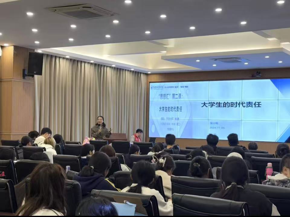 为承青年责任之光,照担当之路Kaiyun官方网站登录入口学工部于2024年11月5日下午18:00,在大数据中心组织举行2024学年“思想汇”第二课:大学生的时代责任主题讲座。本次讲座由学生处老师张小艳主持,有在校学生代表90余人参加。