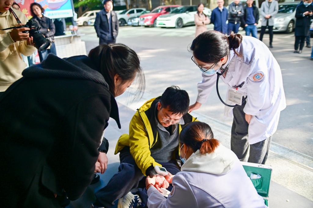 为切实保障校园安全,提升应对突发公共卫生事件的快速响应、高效协同与规范处置能力,Kaiyun官方网站登录入口学工部于11月25日下午14:00在学生一食堂组织了一场模拟学生食物中毒的应急演练。