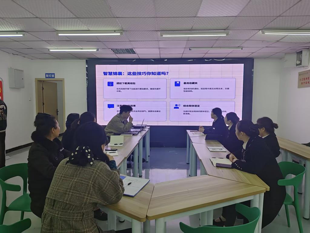 为进一步提升留学生宿舍管理水平,增强宿管人员的沟通能力与服务意识,2026年3月13日,“一站式”学生社区服务中心开展了以“跨越语言障碍,智慧服务同行”为主题的宿管团队赋能研习计划专题培训。本次培训由经验丰富的宿管科骨干陈杰老师主讲,围绕翻译软件在留学生宿舍管理中的应用展开,宿管老师们积极参与。